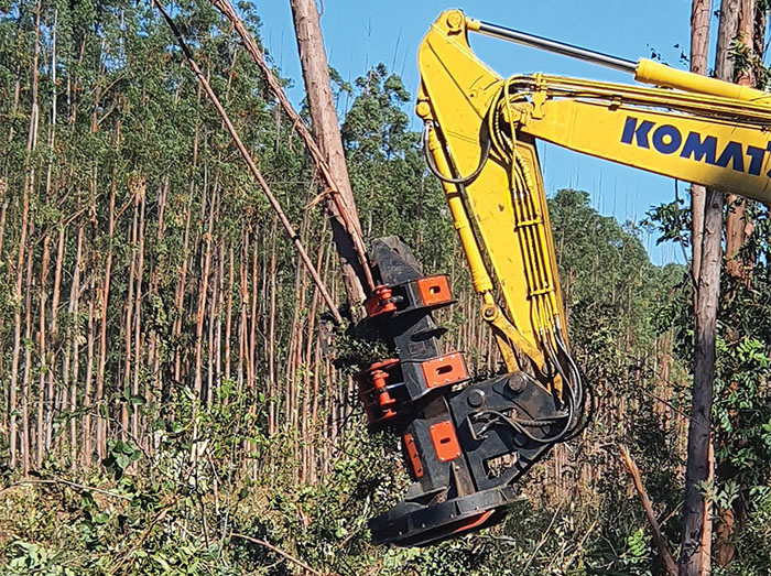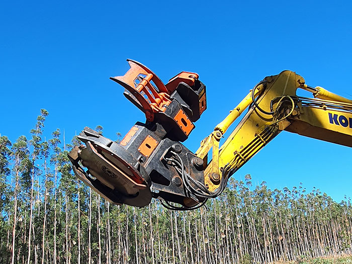 El cabezal Feller de Disco es un equipo producido desde 2018, ideal para bosques de bajo y mediano volumen. Tiene cuatro versiones (dos para excavadoras de 15 a 25 ton, y dos para excavadoras de 30 a 45 ton, con posible aplicación en cargadoras de 10 a 20 ton según análisis). Posee una construcción robusta en acero certificado A572 grado 50, y acero martensítico templado y revenido certificado con una dureza de 450 HB y límite elástico de 1200 MPa. También hay modelos que cuentan con el sistema de inclinación lateral (tilt). |